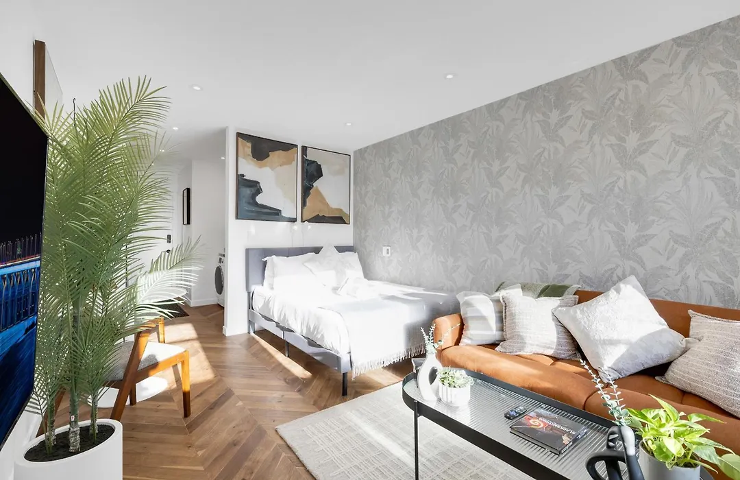The Speakeasy Suite 503 With Parking Montréal de 28 m² est situé à seulement 1 km de la basilique Notre-Dame de Montréal et à moins de 1,1 km de la Écomusée du fier monde.